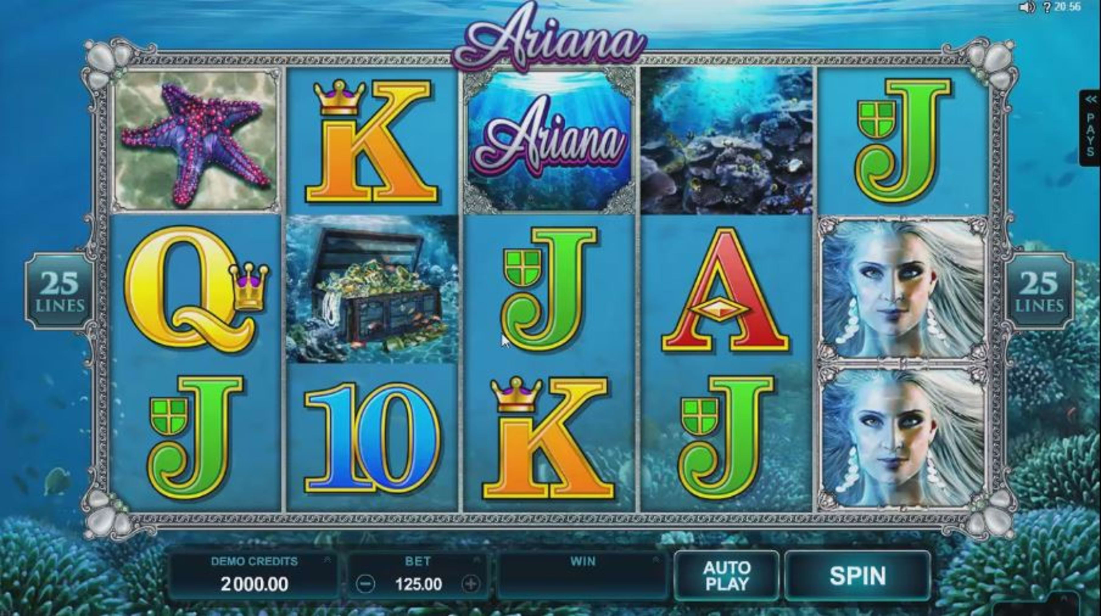 Ariana is one of those games that you seem to play because they offer you mermaids and mostly pretty graphics, but which most people would call average just by looking at it. The theme in question, related to the ocean, its treasures and a mermaid going by the name of Ariana, translates into a pretty enough game as long as you ignore the stock poker cards which Microgaming seems to use in the majority of the slots they put out. Ariana’s 5 reels hold 25 lines for you, to spin as you please. The slot relies heavily on expanding symbols, both during regular and free spins. You will also encounter along the way the wild symbols, the scatters and the free spins that you expect to get from most slots these days. You can win a top prize of $12,500.