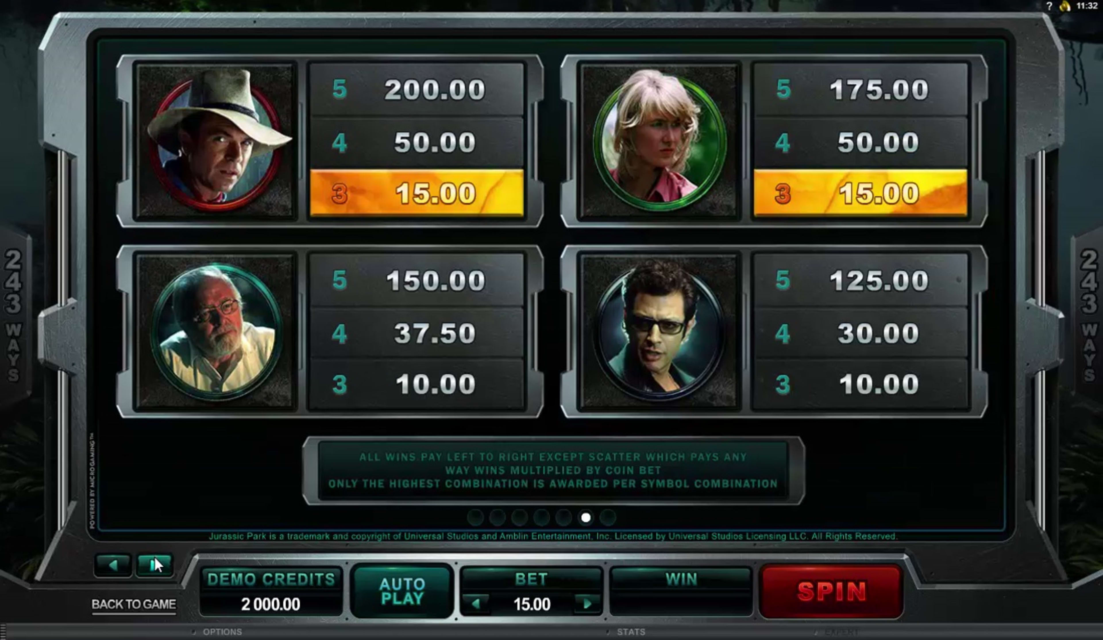The win ratio or volatility of the Jurassic Park slot machine online is considered medium, offering a balanced blend of win frequency and payout size.