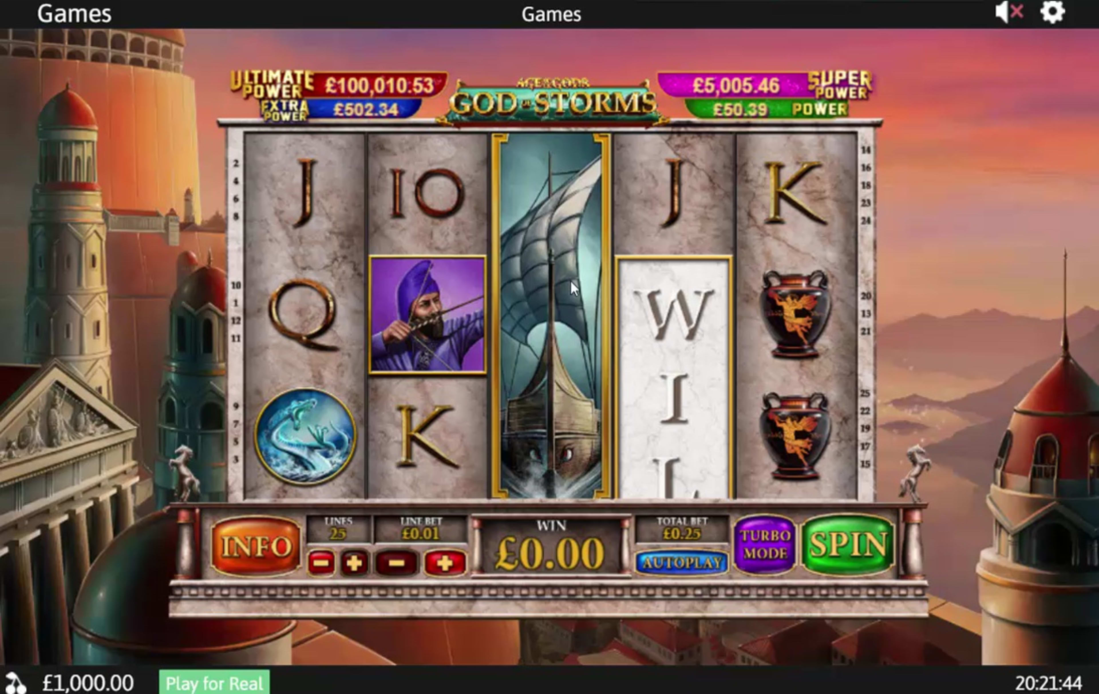 Gods of Storm is a typical slot machine for the Age of the Gods series. It’s got the usual above average graphics, a focus on a Greek god and some unusual features that can be fun to play through.